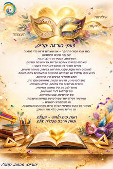 << חזרה למרחב "אנחנו כותבים" הימים שאנו חווים השנה מתנהלים לפי לוחות זמנים שברובם לא אנו מכתיבים ונשלטים לפי כל מיני אירועים שמחוץ...
